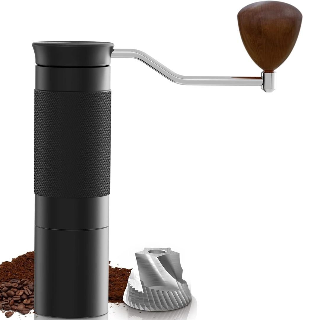 - Coaxial Double Bearing Structure: manual coffee grinder’s double stainless steel ball bearing, the rotation system smooth as cream, makes you even grind a lot of coffee powder effortlessly. In addition, the precise double bearing fixed structure can makes the grinding more uniform, and makes coffee extraction more even and stable.