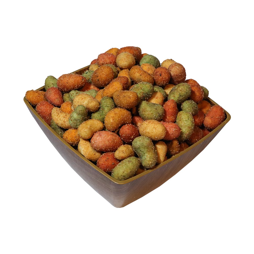 Assorted-flavored coated cashews, crunchy, fresh, and full of delicious mixed tastes. Perfect for snacking anytime. Available now at AlQuraishi Foods in Kuwait.