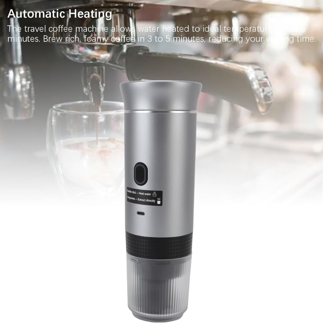 - Automatic Heating: The travel coffee machine allows water heated to ideal temperature in just 5 minutes. Brew rich, foamy coffee in 3 to 5 minutes, reducing your waiting time.